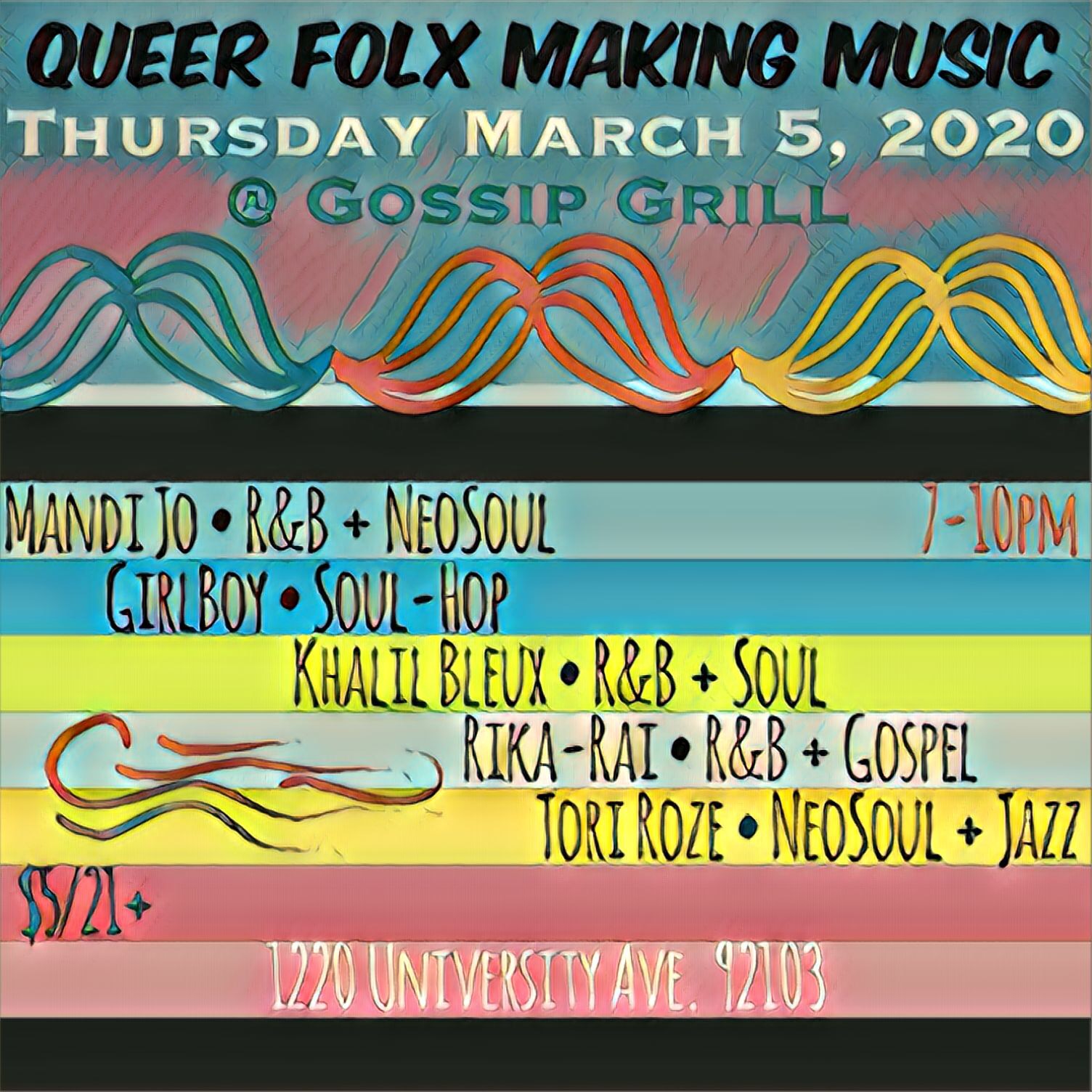 Queer Folx Making Music!!! 🎶 This Show is a NEW SPECIAL Curated Quarterly Series including music by QUEER ARTISTS in many genres, here to share their art with you, all the way from San Diego to Iowa ❤️ $5/21+, 7-10pm